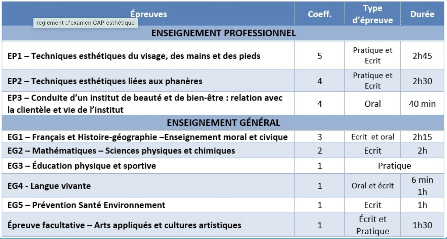 - Préparation au diplôme d’état du CAP Esthétique Cosmétique Parfumerie