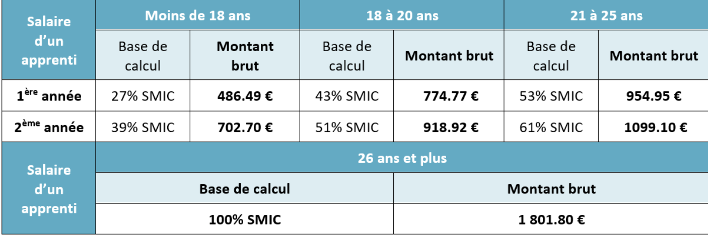 Rémunération : Elle correspond à un pourcentage du SMIC selon l’âge et la progression dans le cycle de formation.