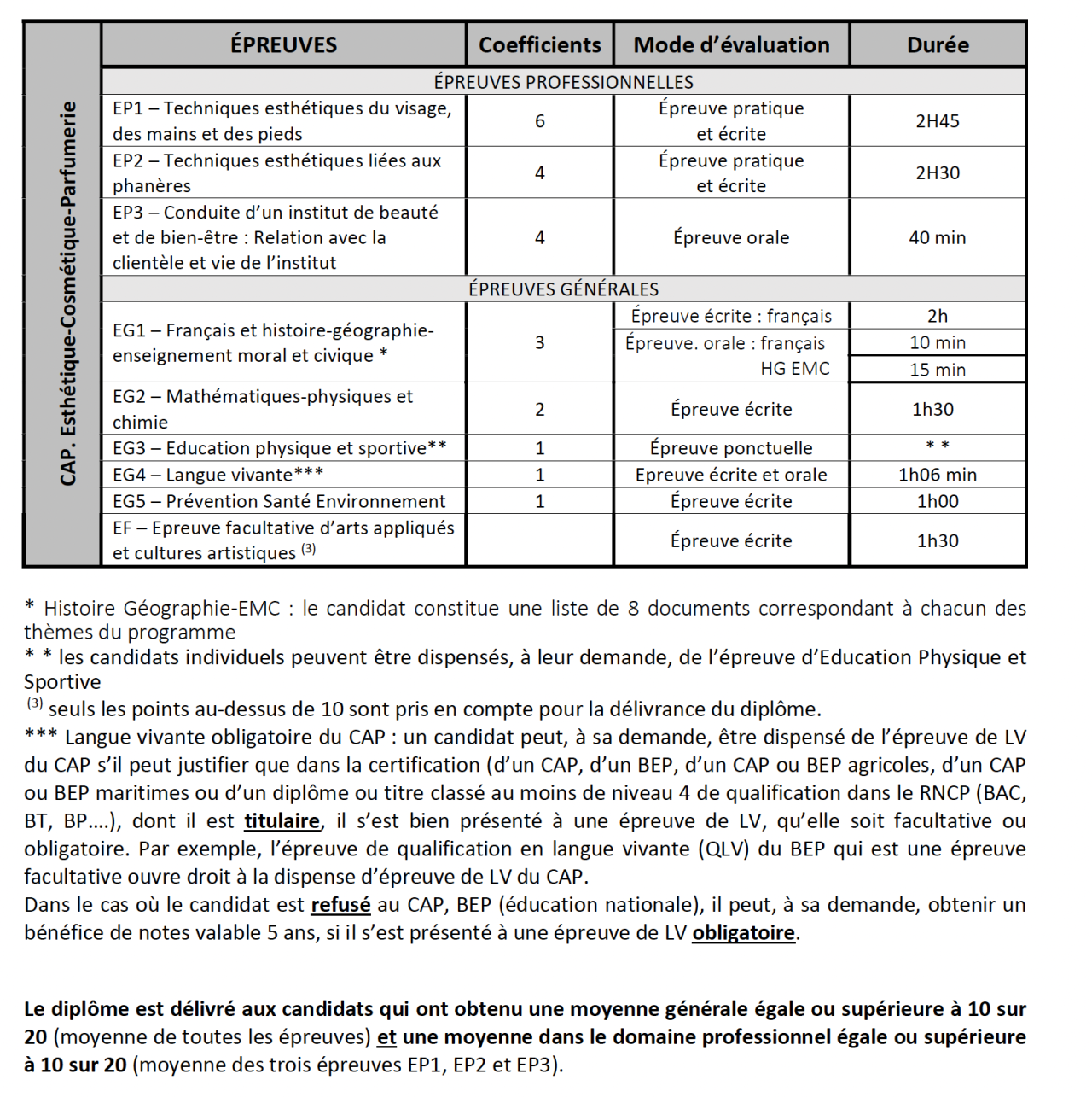 Le diplôme du CAP esthétique est délivré par l’Inspection Académique lors d’une évaluation des matières théoriques et pratiques à la fin de la deuxième année.