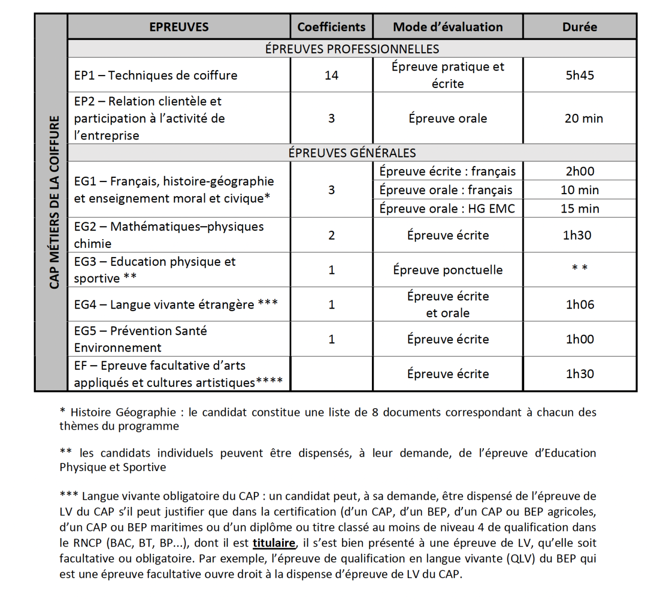 Conforme au référentiel de la certification professionnelle CAP Métiers de la Coiffure, Fiche RNCP n°39266.